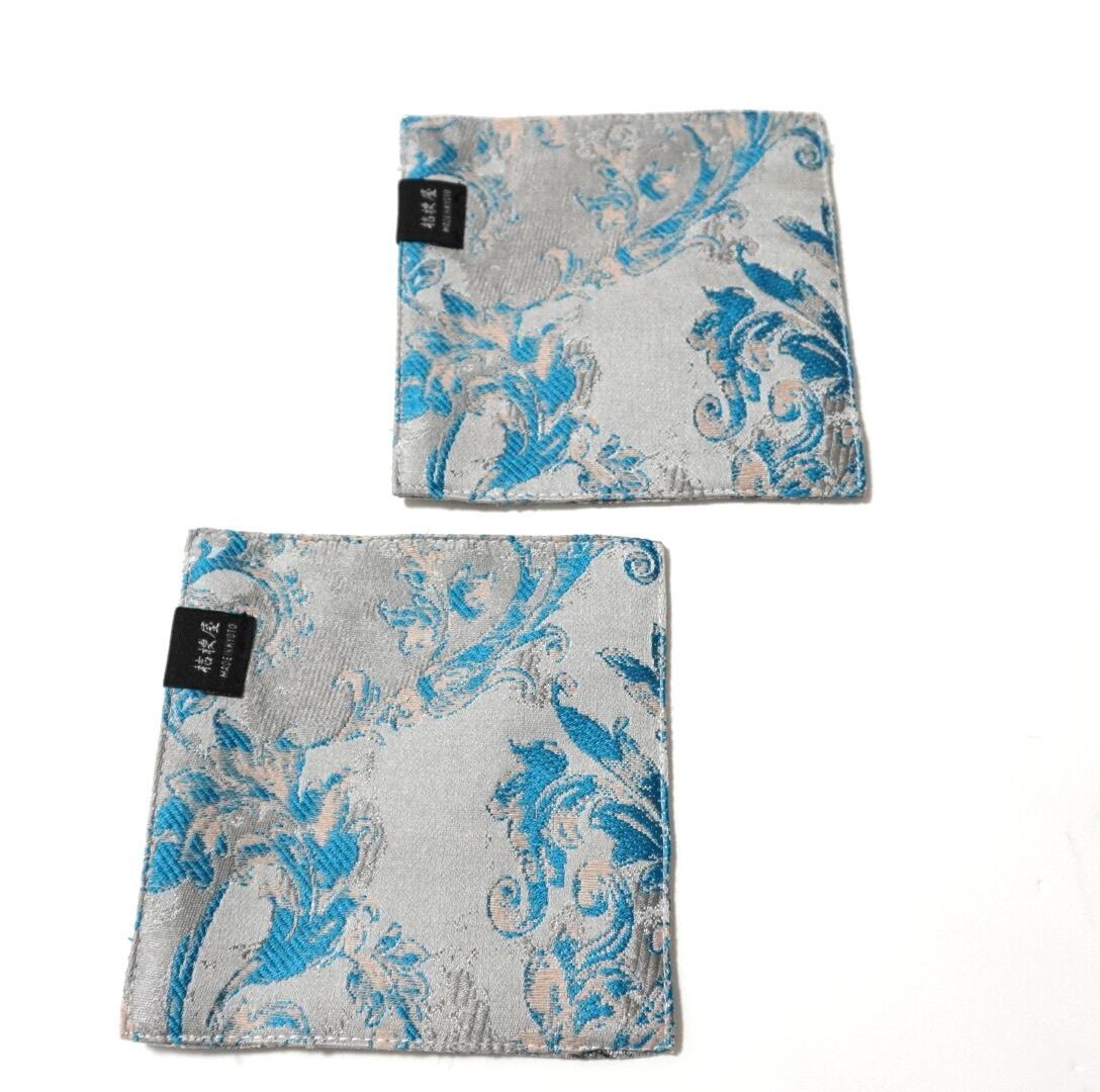 京都・西陣の織元にて、ネクタイ用の専用織機で丹念に織り上げた錦織の生地を使用したコースター。