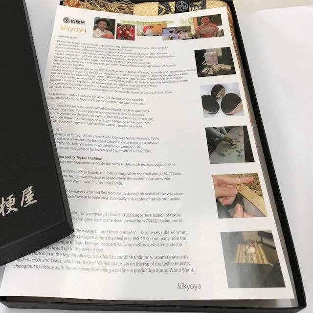 西陣織りの歴史を英文で説明した説明書ご用意ございます。(ご注文の際にご指示下さい)