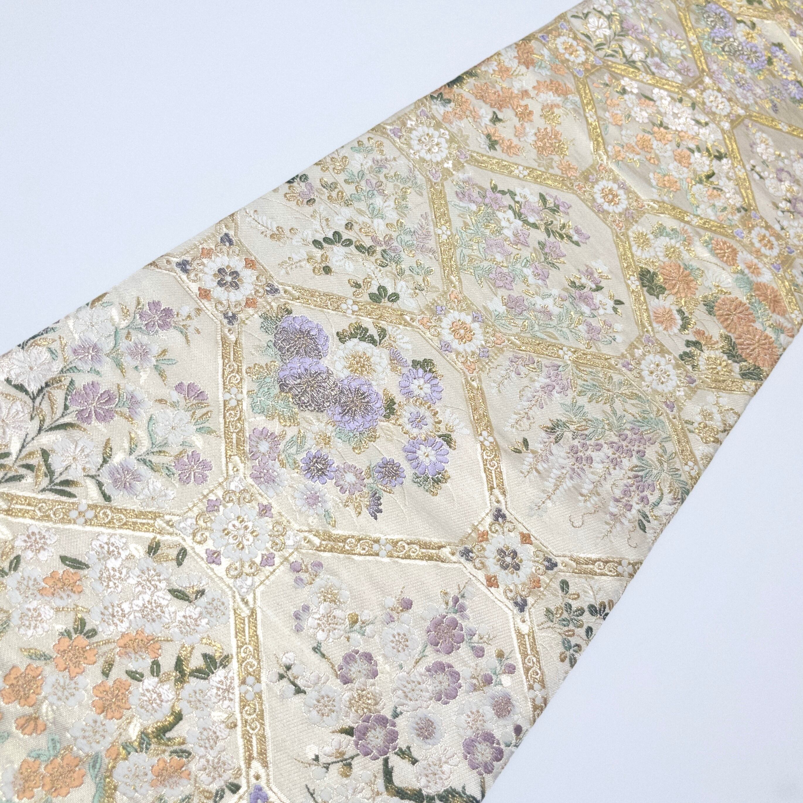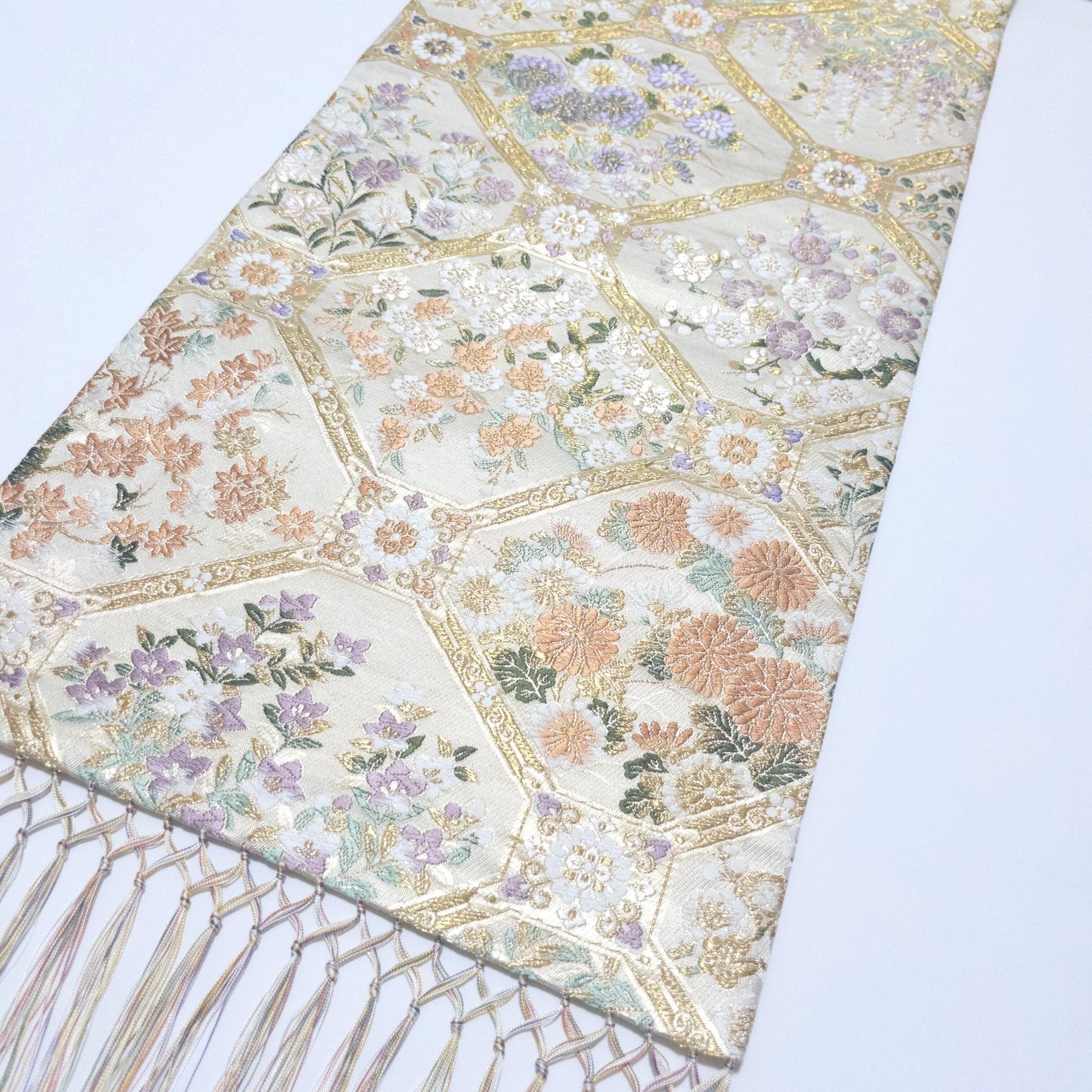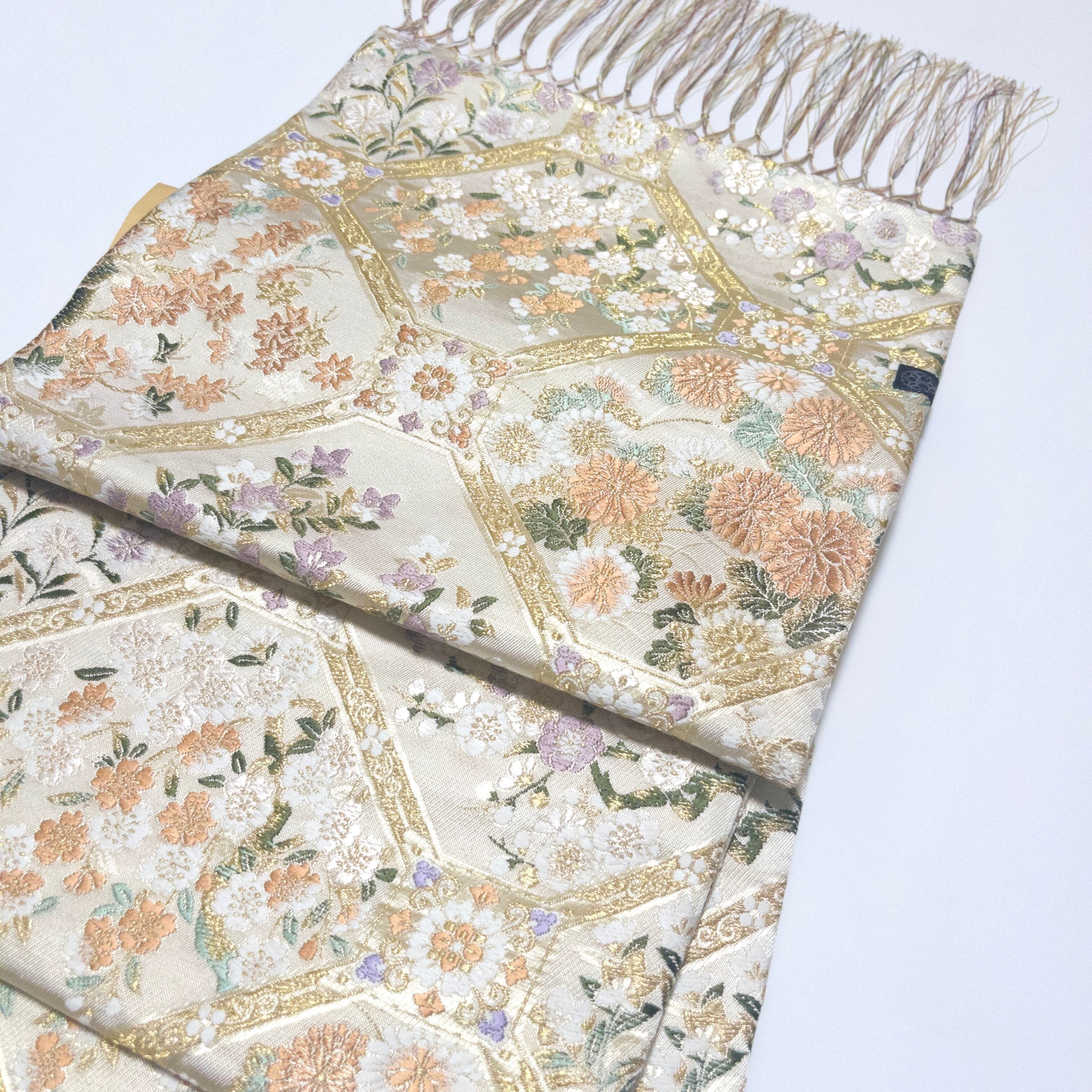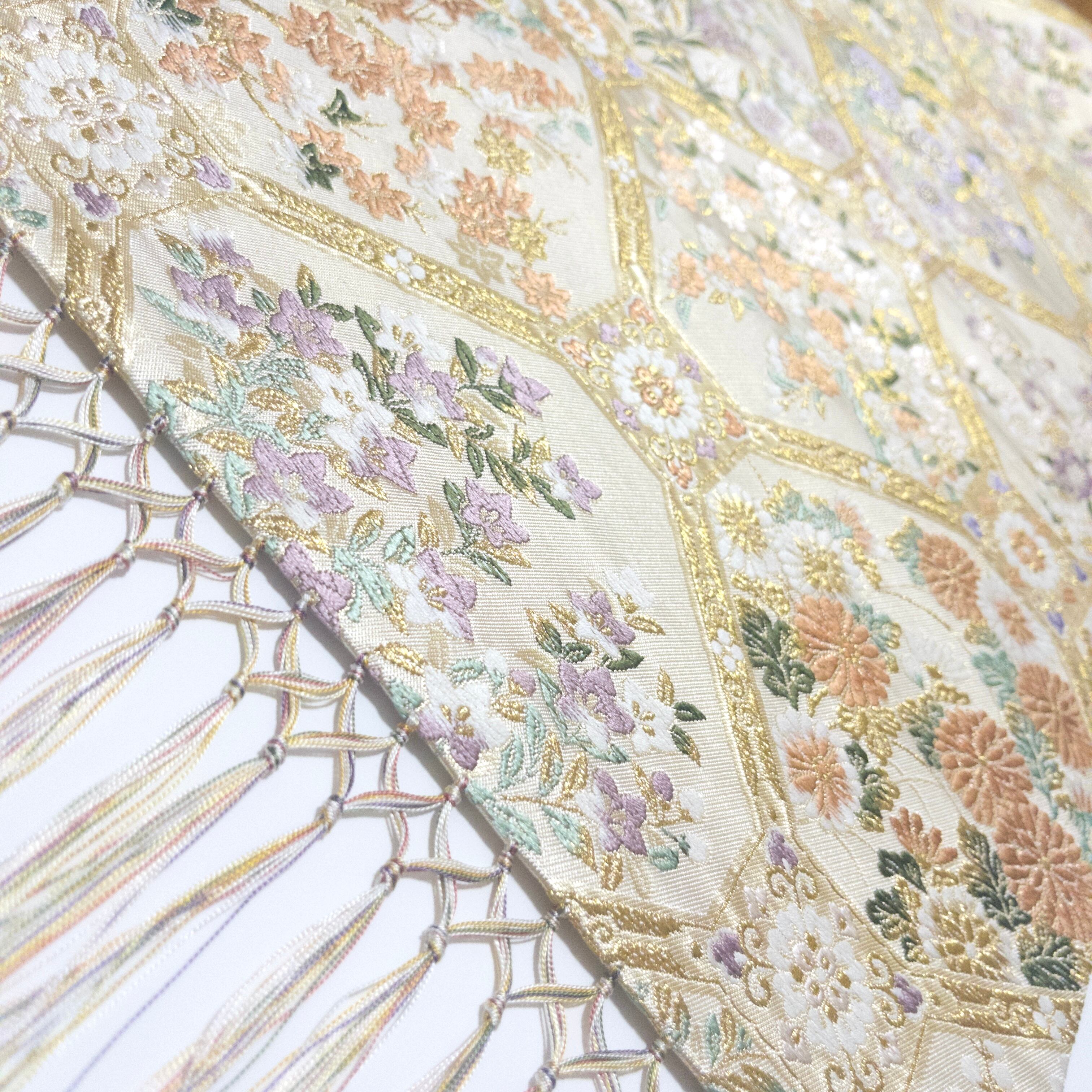 表地には、西陣織を使用し、しなやかな光沢と繊細な文様美をお楽しみいただけます。