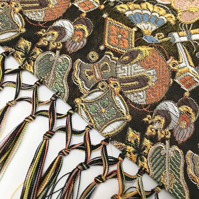 両端にあしらった房は正絹製。表地の色合いに合わせ、一本一本丁寧に染め上げられた糸で仕立てています。
