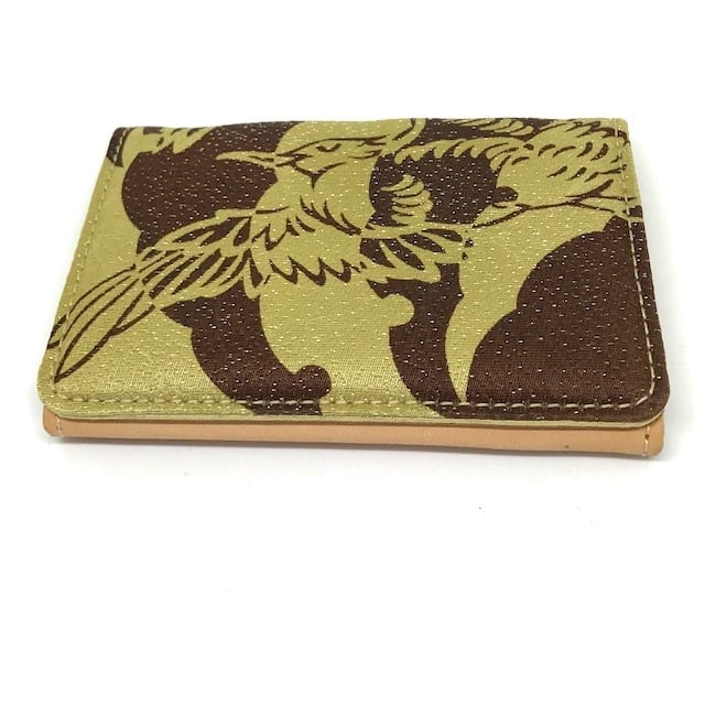 西陣織の帯生地に型友禅で柄を対比させた 桔梗屋オリジナルの 白鷺柄に染めた名刺&定期入れを作りました。内側にも西陣織りの帯を使いヌメ革との組み合わせがモダンで尚且つ使いやすいデザインになってます。